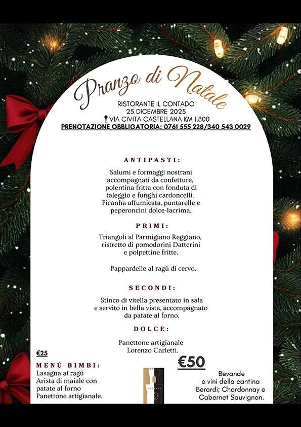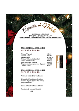 Menu di Carne e Pesce a partire da 25,00 €, visita la pagina menu per cerimonie